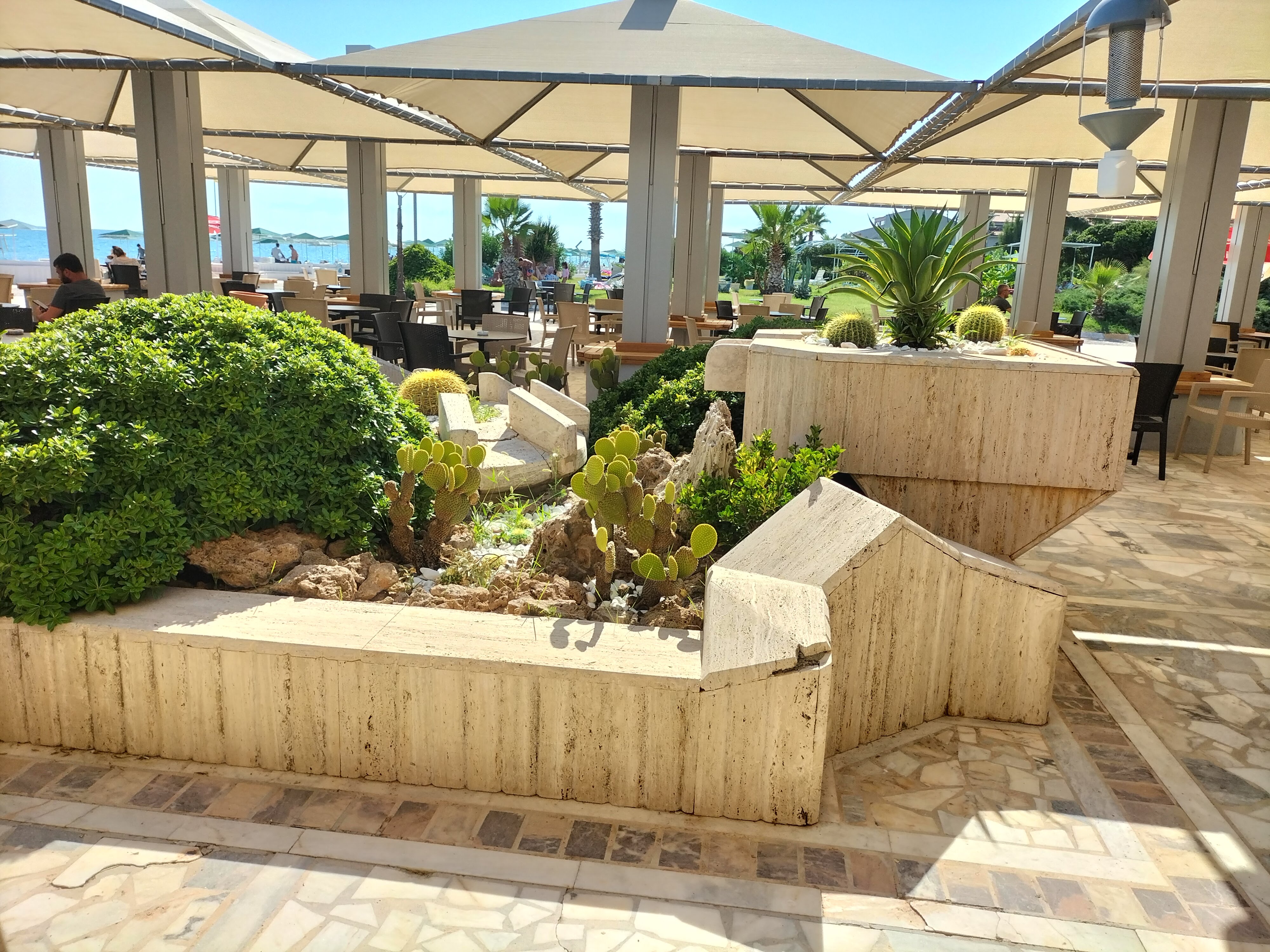 Kampa girişte bize bir kart verdiler. Bu karta dolum yaparak, içeride yer alan kafeden yiyecek ve içeceklerimizi alabileceğimizi söylediler. Karta 200 TL dolum yaptık. Karttan artan paraları çıkışta iade ettiklerini belirtiler. İçerisi gerçekten çok güzeldi. Sahilin hemen önüne sıralı halde beyaz şezlongları ve şemsiyeleri dizmişler. Sahilin giriş kısmını da yeşil çimenlik alanlarla süslemişler. Hemen kendimize uygun bir şezlong seçip eşyalarımızı yerleştirdik. Çocuklar sıcaktan bunaldıkları için hemen denize koştular. Onların denizde yüzmesini izlemek bile benim keyfimi yerine getirmişti. Biz de Abim ile eski anıları tazeledik.