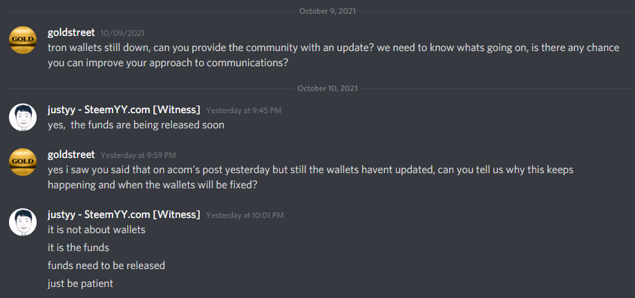 We assume by that he means Justin Sun or the Tron Team are on holiday or something! We're not sure what to make of it to tell you the truth but anyway as you can see from the dates that @justyy stated they have been back 4 days now but still the wallets haven't updated.