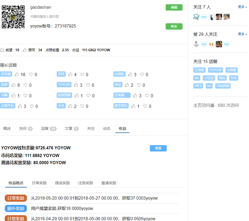 注册就送20个yoyow