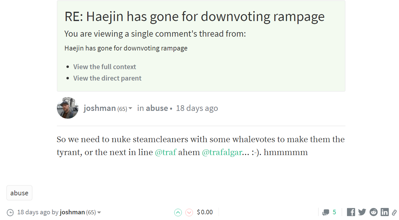 Downvoting this post for targeting an individual and retaliating against abuse fighters. Don't buy excessive votes for garbage content, and there is no problem.
