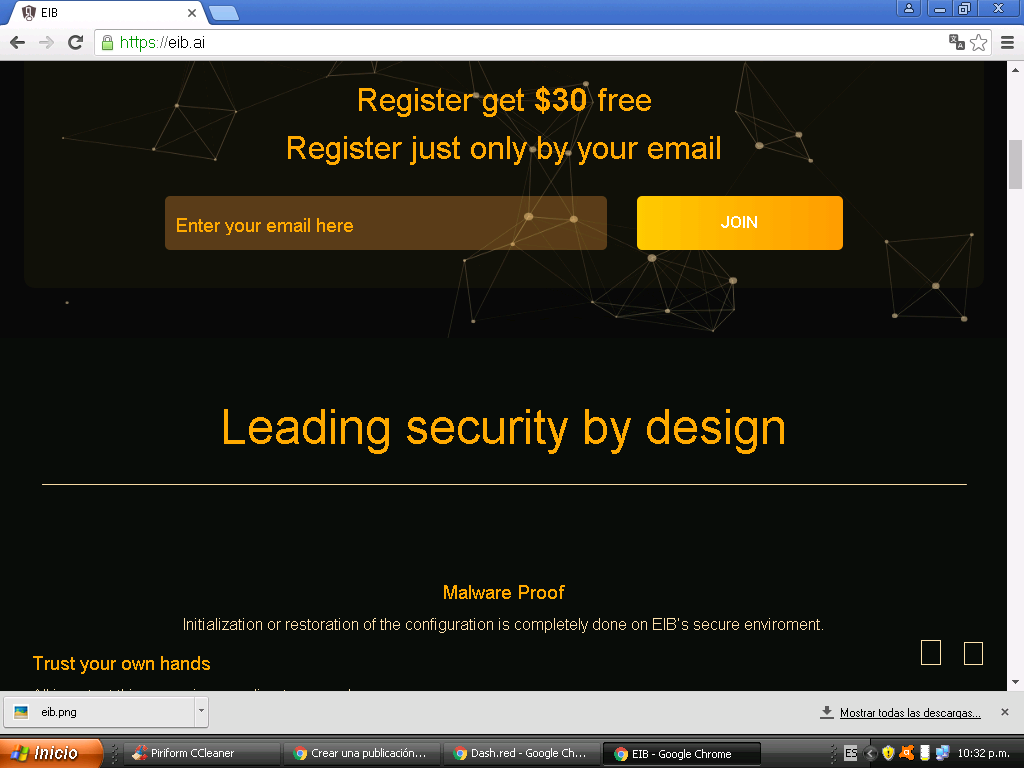 se trata de una nueva billetera o airdrop que ya esta funcionando que esta otorgando 30 dolares a los primeros suscriptores que la deseen ser miembros de este lugar, lo único es que estos 30$ no son cambiables o se pueden usar fuera de EIB, solo pueden ser cambiados en tokens o en comisiones exclusivos, es decir es cerrado, es la información que se ha podido concretar, no sabemos si mas a delante se podrá usar o cambiar por otras monedas o darle algún otro uso, estos tokens pudieran tener algún valor en el futuro si el monedero agarra solidez o logra posesionarse del mercado, esperemos pronto tener mejor noticias, por ahora los invito a conocer este sitio wed o airdrop suscribiendose o simplemente hechandole un vistaso a su pagina wed la cual es http://.eib.ai o si gustan desde mi red directa o dirección Eib la cuel es https://eib.ai/?ref=dnrsm