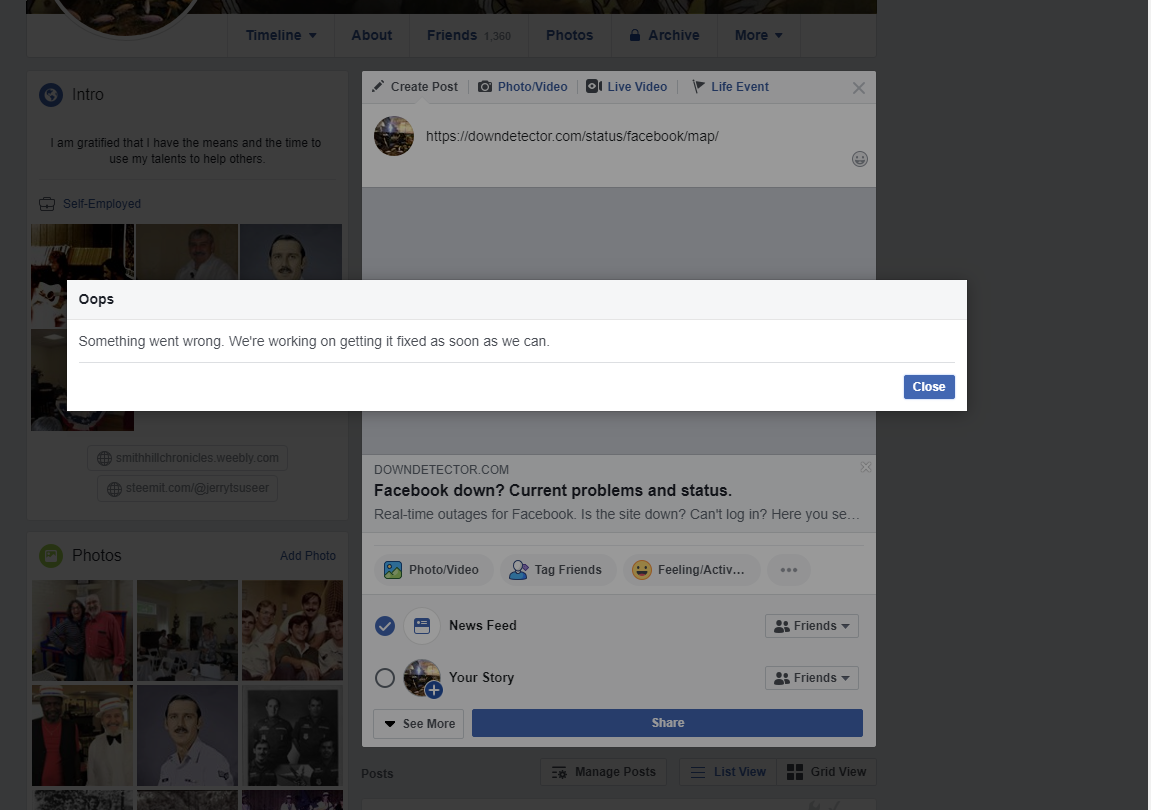 Howdy sir jerrytsuseer! Oh, facebook has technical difficulties too huh? Biggest outfit in the world gets all wonky. Well it couldn't happen to a nicer bunch!