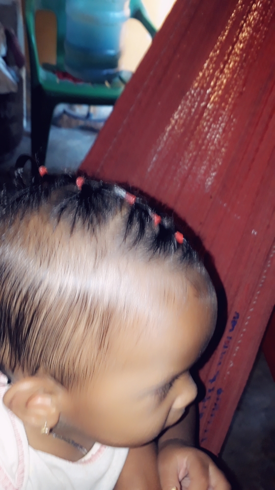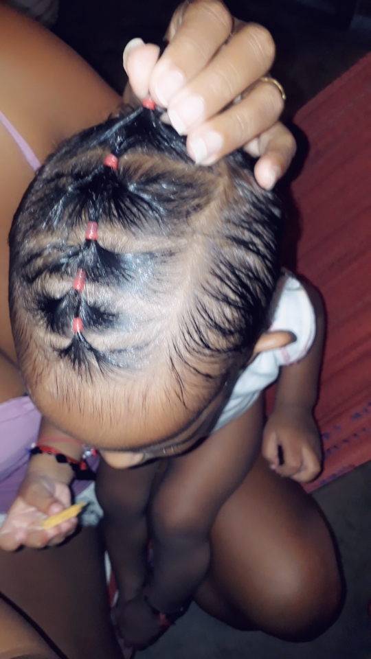 Buenas tardes mis amistades de #steemit . Hoy es un dia alegre para mi, porque ya a mi hija Henglys Leonides Enmar le esta creciendo su cabello, me puse creativa y la peine y le hice estos moñitos en su pelito!!! Me siento contenta porque ya mi niña se le puede agarrar sus peinaditos. Hoy es miercoles de #creatividad