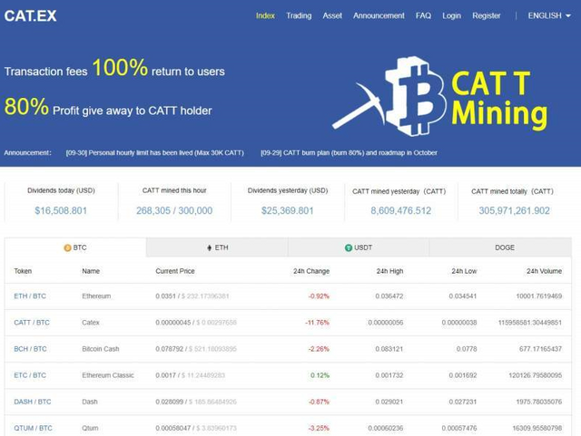 Der Catex-Aktienmarkt verfügt wie andere große Börsen über eigene Markierungen. Dieser auf ERC20 basierende Marker bietet Ihnen viele Vorteile. Lassen Sie uns kurz besprechen, was es ist. Ich möchte aber vorher ein paar Details zum Marker teilen. Das Tokensymbol ist CATT (Cat Token). 10 Milliarden CATT wurden gestartet. Über fünf Milliarden zuvor brannten dreimal in Folge acht Milliarden. Der Umlauf beträgt derzeit 2 Milliarden CATT. Darüber hinaus reduziert der Aktienmarkt häufig die Anzahl der Schwankungen. Der Indikatorpreis wird also im Laufe der Zeit steigen.