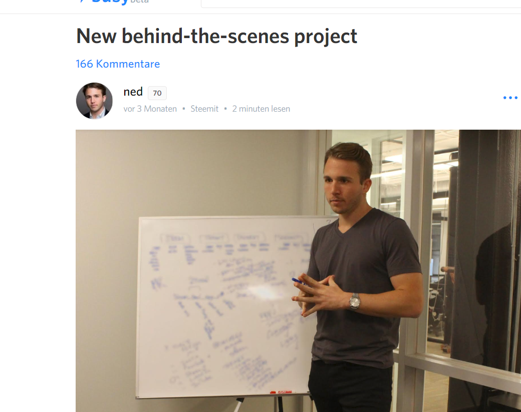 Was Ned vorhat, da denkt auch keiner mehr dran. Vor 3 Monaten gab er bekannt, dass unabhängig von Steemit Inc eine ganz neue Firma (Destiny) aufziehen wird. Welche ein Social-Media bastelt welches echte Leute auf den Steem bringen wird.