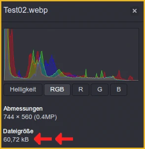 In diesem Beispiel liegt die Einsparung bei 91.4% - das ist schon nennenswert! Damit sinkt nicht nur der Speicherbedarf am Image-Server, die Bilder werden dadurch auch wesentlich schneller geladen.