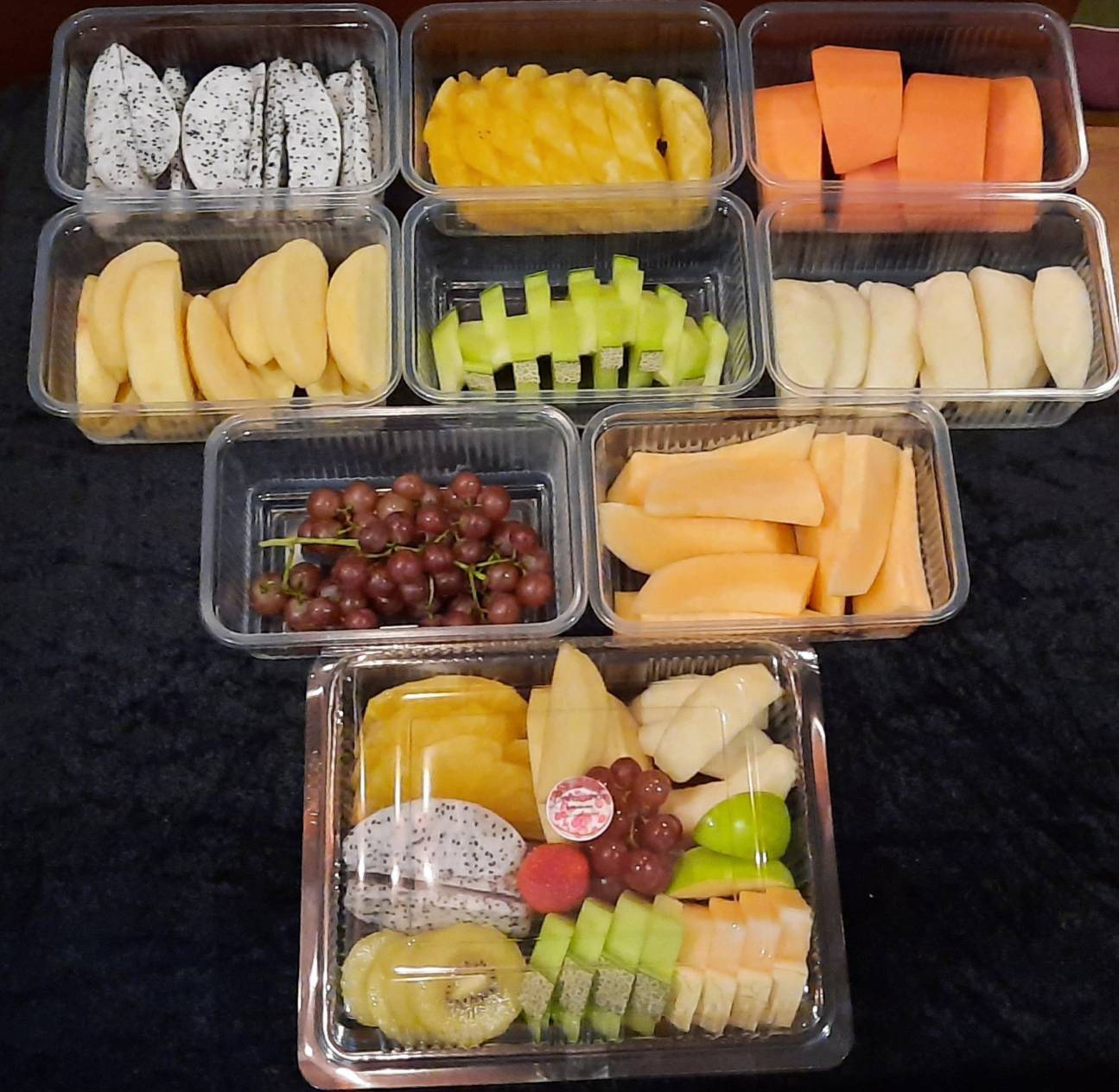 แบบพร้อมทาน มะละกอ,แก้วมังกร,กีวี่,องุ่น,แอ๊ปเปิ้ล,สาลี่,