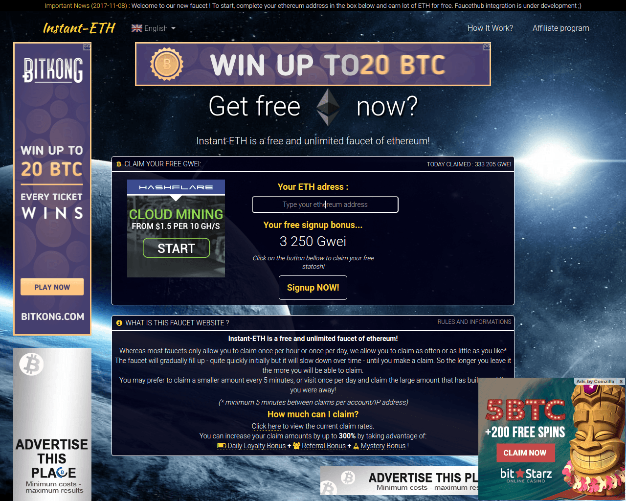Instant-Faucet is a means that allows you to win more easily, while most of the faucet only allows you to recover once per hour or per day, so you can claim as many times as you wish.