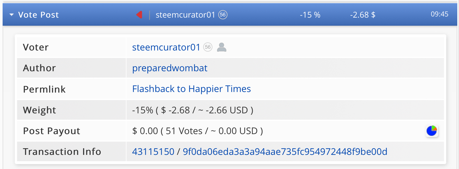 Thanks for the vote @steemcurator01! It’s so heartwarming to have a stalker. But are your downvotes now hidden on the Steemit front end? This screenshot from SteemWorld was taken well before the screenshot shown below from the refreshed post itself: