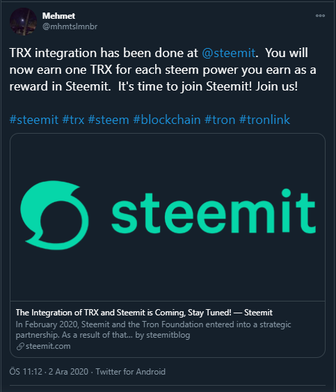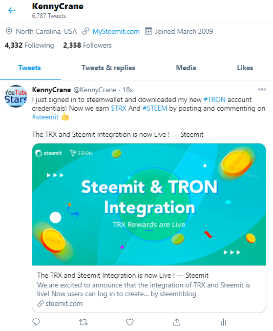 The integration of TRX into the Steem rewards system is a great new benefit for all active Steemians.