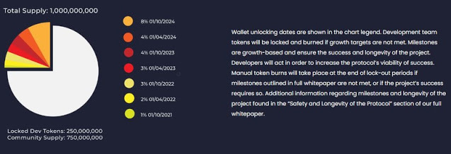The DxSale network manages sales and records liquidity on PancakeSwap in the amount of 75% of funds raised.