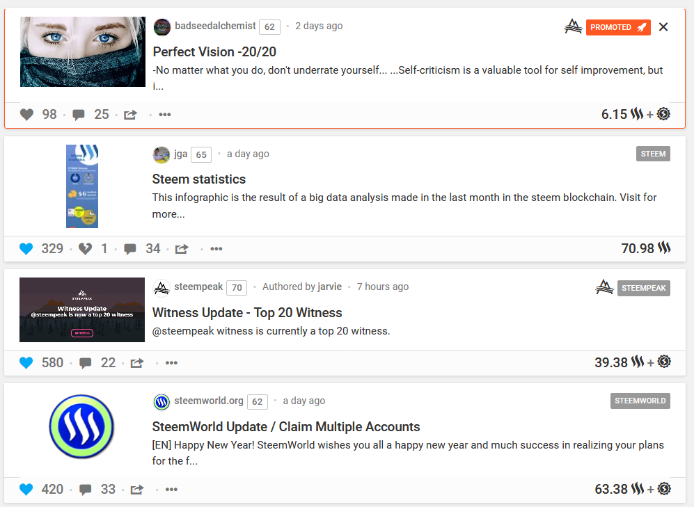 So the steempeak promotion tool is an awesome feature that will help you gain visibility and followers without need to buy votes. The promoted posts look like this: