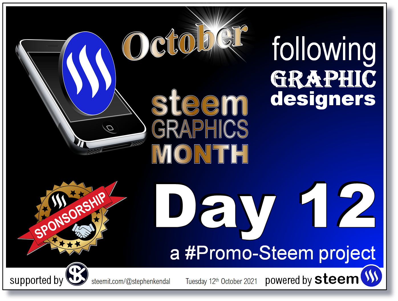 #3 October Steem Graphics Month Day 12. Looking for more Graphic Designers to follow. -- by @stephenkendal with a current reward of 41 SBD