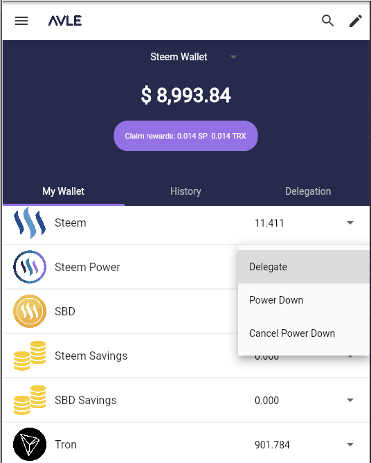 Hi, I am etainclub who develops several apps for steem such as Play Steem. Recently I have started to run a witness node. Please vote for me as a witness. You can vote here find etainclub ranked at 44 or here Most of Steemit users know how to delegate steem power to someone. There is a great service by steemchillers You can do the delegation in the AVLE dapp, too! If you click the balance of Steem Power, you will see the following popup and then select Delegate menu. Then the follo...