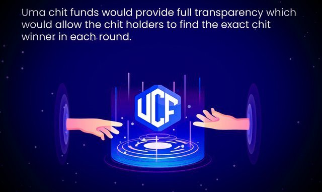 Anggota putaran chit juga akan mendapat manfaat dari kesempatan untuk meminjam pinjaman dengan tingkat bunga serendah mungkin dengan kondisi yang paling fleksibel, asalkan mereka menggunakan token utilitas (UCF) kami sebagai jaminan hukum. Tetapi kami juga akan memungkinkan pemegang chit untuk menarik keuntungan mereka dalam mata uang yang stabil seperti USDT selain token utilitas kami, yang akan berfungsi sebagai alat pembayaran yang menyeluruh dan eksklusif untuk sistem regulasi di dalamnya. Kami akan menyediakan berbagai mata uang untuk kepentingan pemegang chit, memungkinkan mereka untuk memaksimalkan pendapatan mereka sambil mengambil sedikit atau tanpa risiko.