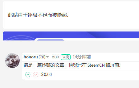 刚才打开steemit,看到昨天发的《清单:你真的会读书吗?》被@honoru 屏蔽。并附有留言,“這是一篇抄襲的文章,帳號已在 SteemCN 被屏蔽.”