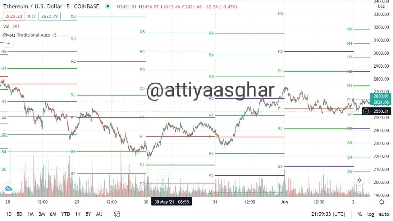 decided to apply the pivot points on the current chart of Ethereum coin. As discussed earlier, pivot points help us to ready any