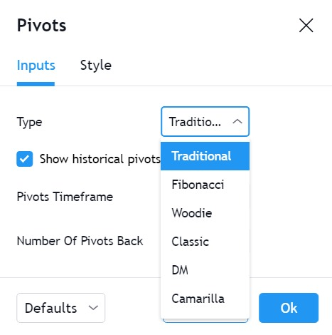 For applying pivot points on to the chart, i used trading view app. here below are the steps of applying pivot points.