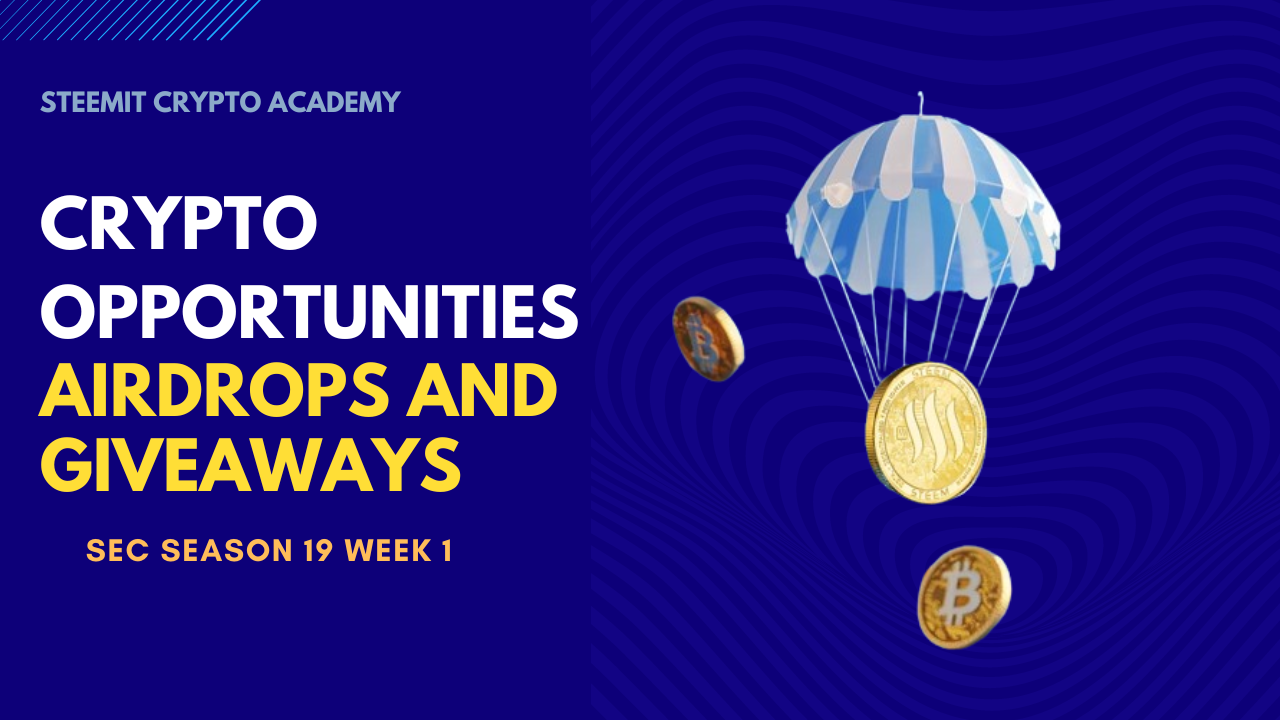 El título de tu artículo debe ser SEC S19-W1 || Oportunidades Cripto: Airdrops y Giveaways. Añade la etiqueta #cryptoacademy-s19w1 y otras etiquetas relevantes.