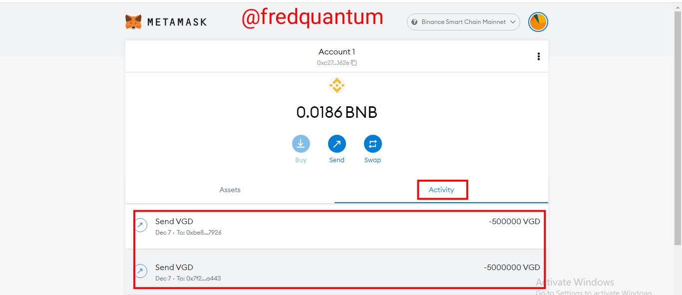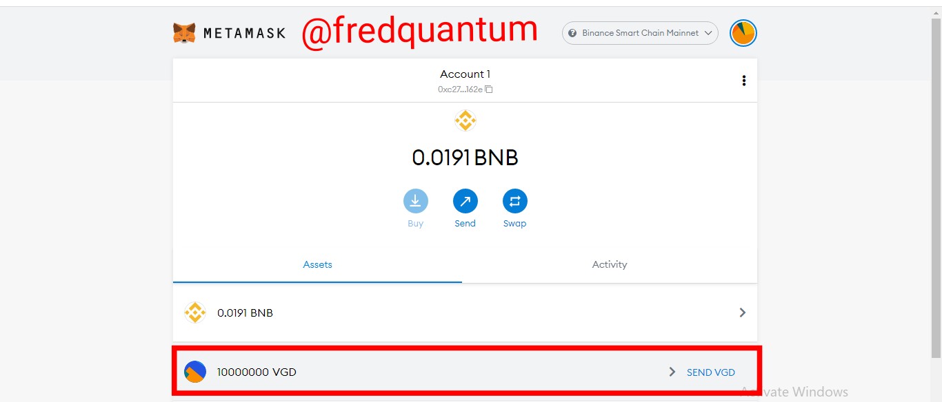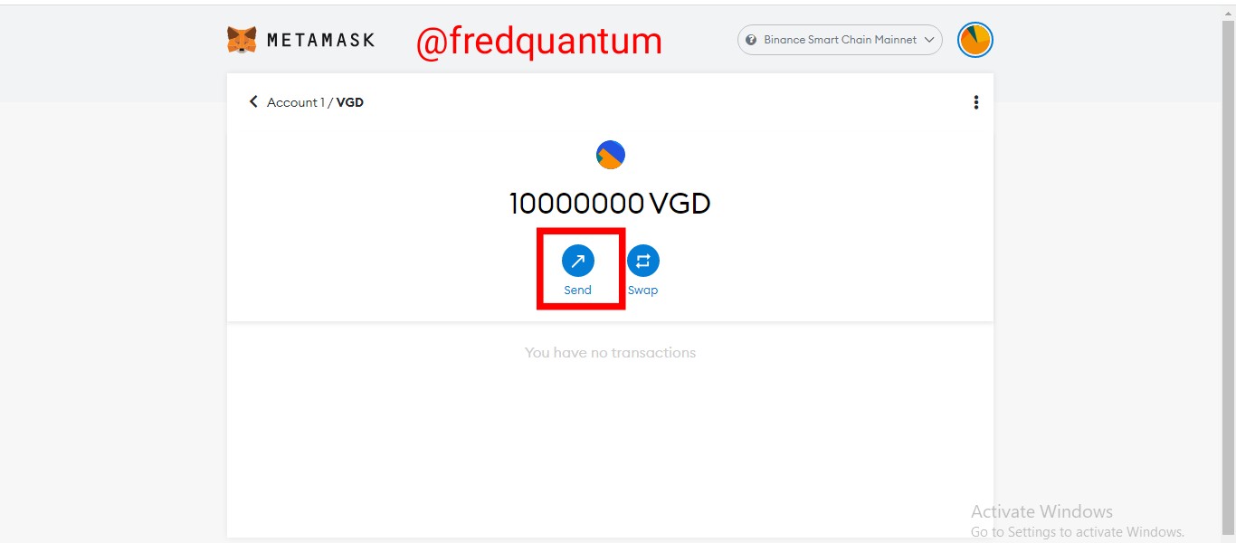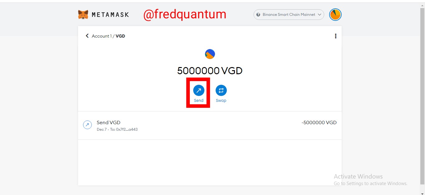 - I launched my MetaMask wallet and clicked on my VGD asset. On the next interface, I clicked on the send button. See the screenshots below.