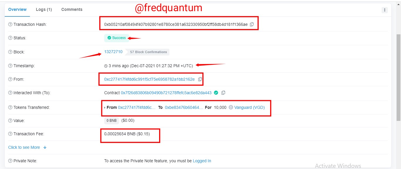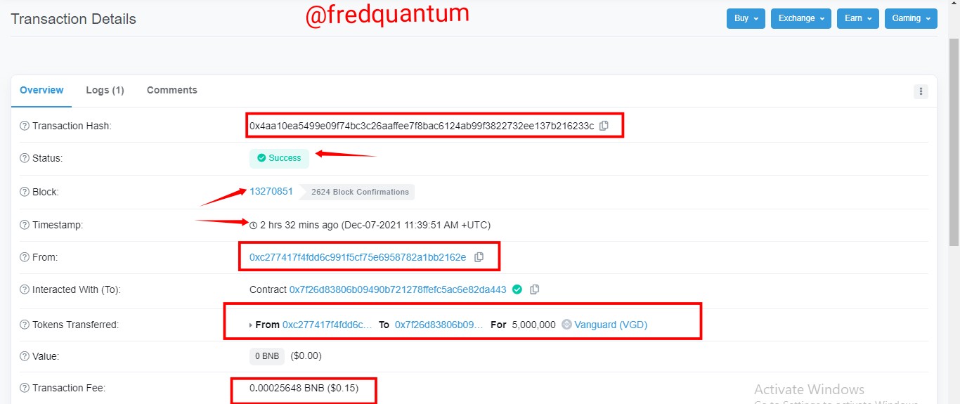 Verification of the transaction details on BscScan