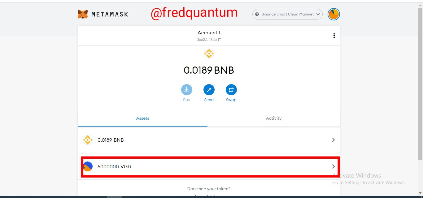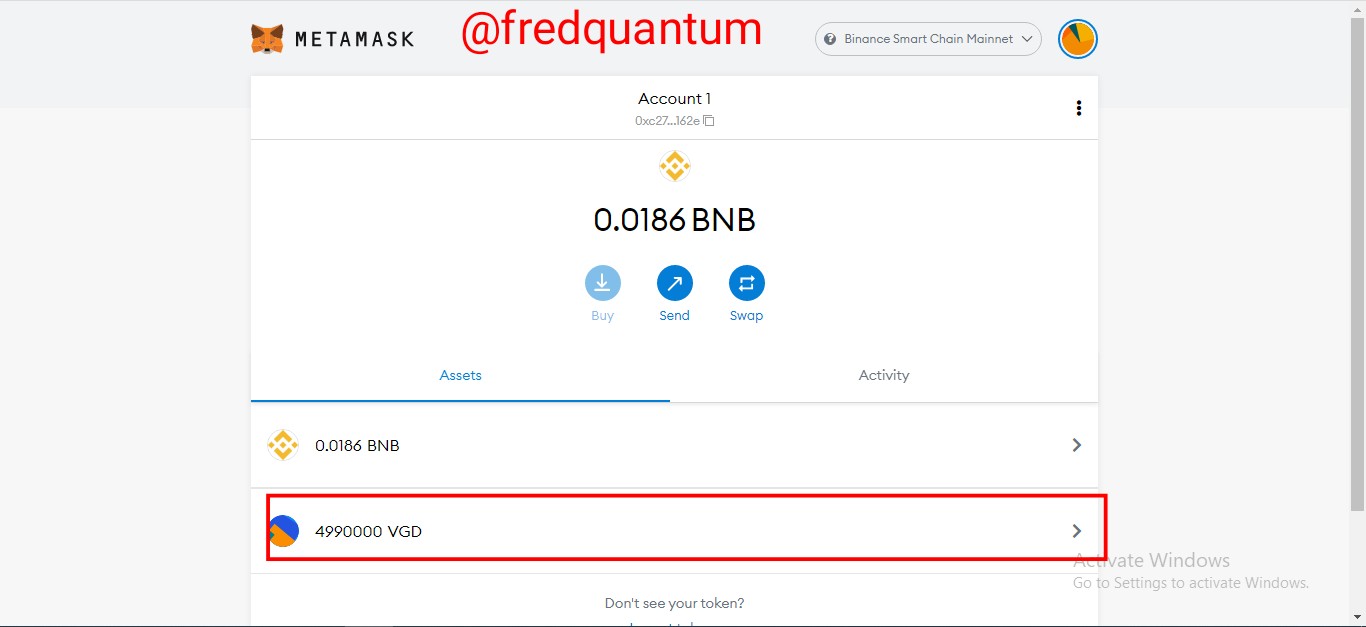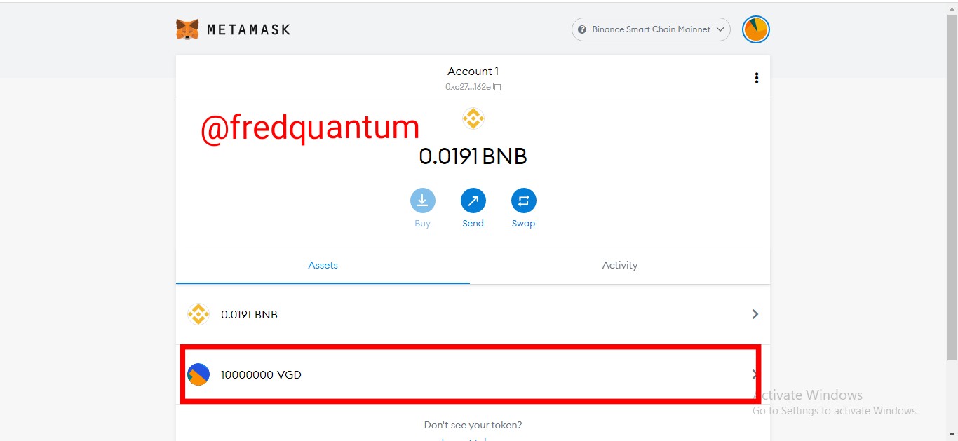 VGD in MetaMask Wallet- Screenshot from Metamask