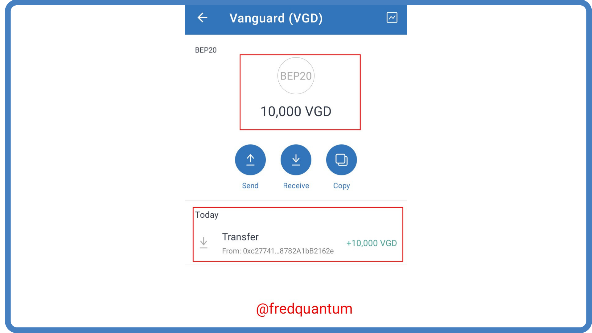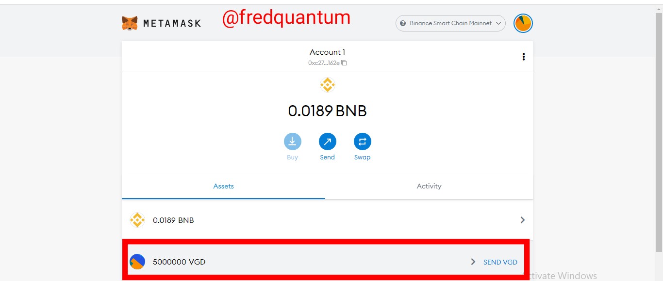 - Now that I have gotten my Trust Wallet public key, I launched my MetaMask wallet, clicked on VGD asset, and tapped the send button. See the screenshots below.