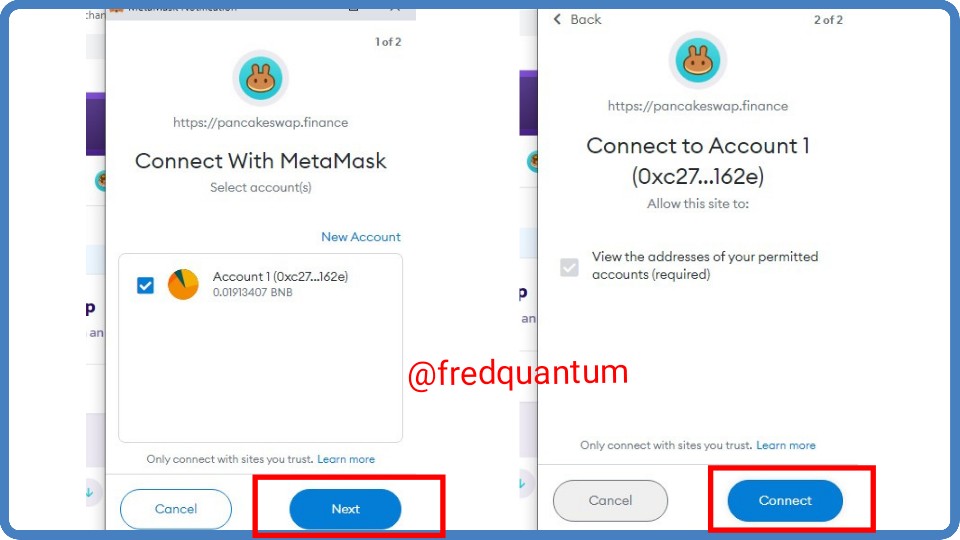 - Now to choose the wallet I am connecting with the exchange, I selected MetaMask Wallet. It's necessary to authorize the connection, so on the MetaMask wallet I clicked next then connect to the DEX. See the screenshots below.