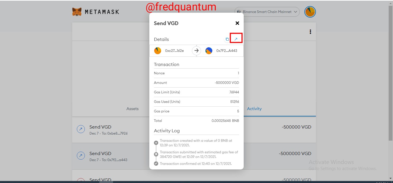 Note that: The most recent transaction on my MetaMask wallet is the transaction of 10,000 VGD to the Trust Wallet. The -500,000 must have been a technical issue after my failed 500,000 transaction due to the network. It can be verified on the BscScan as I've shared earlier, the most recent transactions are 5,000,000 VGD for listing and 10,000 VGD transfer to the Trust Wallet.