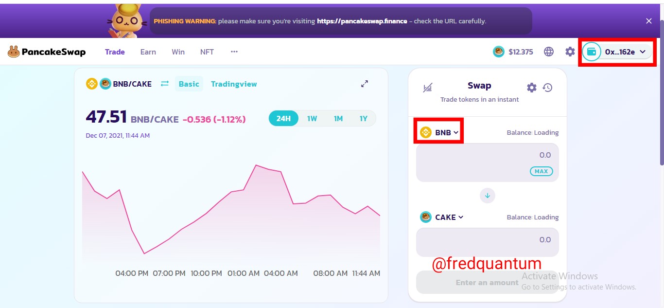 Screenshot from PancakeSwap
