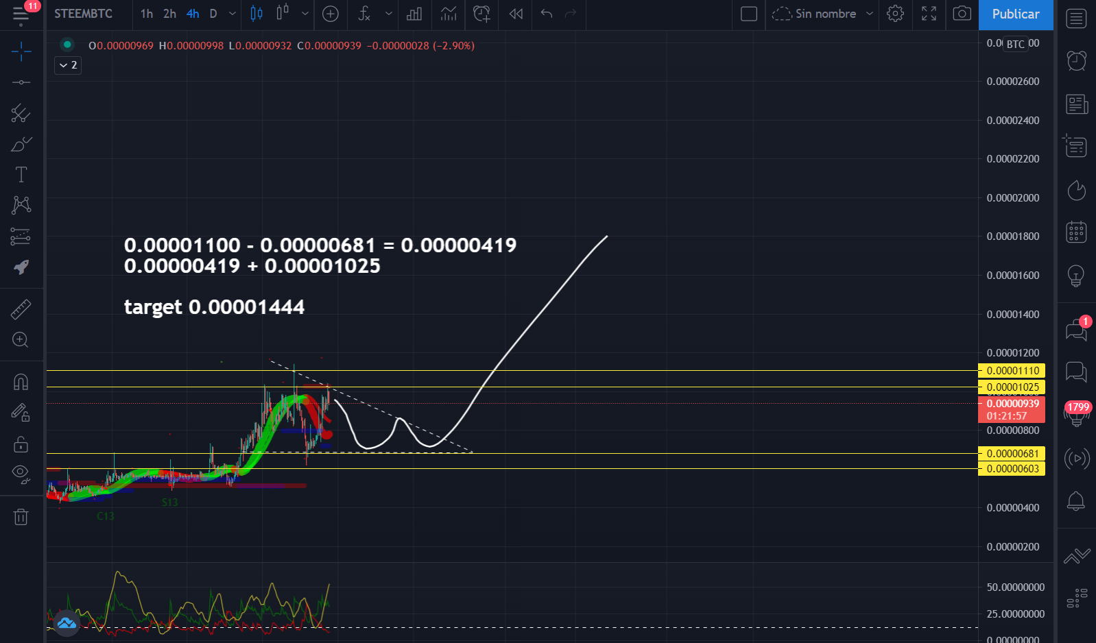 #STEEM muestra fuerza y dirección alcista, intentando romper la resistencia de 4h busca conseguir un nuevo precio que pronto lograra