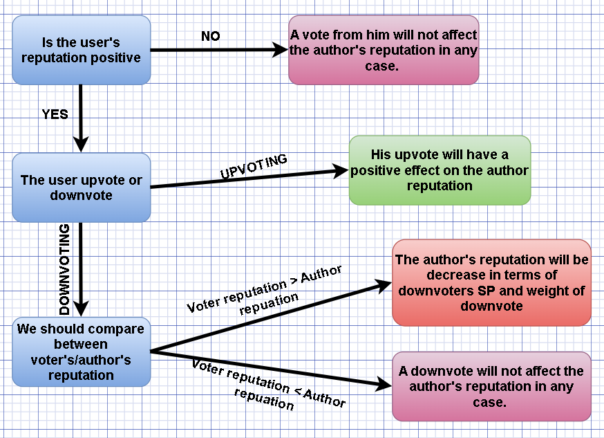 On the other hand, by pressing downvote, the amount of the reward which also depends on the SP and the weight of the vote will go back to the reward pool and the reputation value decreases.