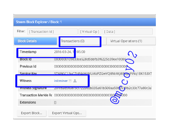 From the two screenshots, it can be observed that both blocks at 1 had 0 transactions have similar dates with the same witness