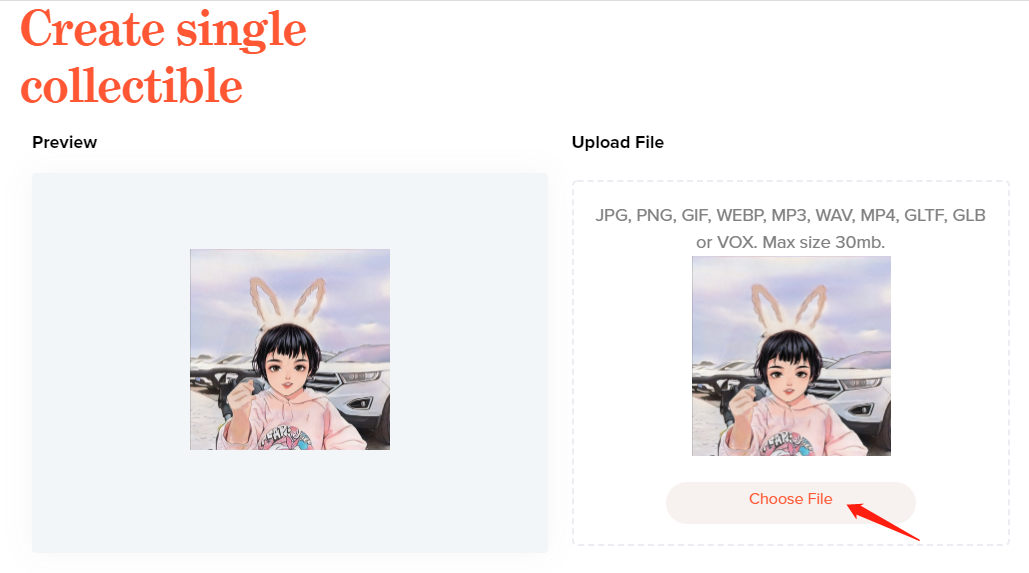 点击Choose File,选择你所要上传的作品,根据上面的格式要求和大小上传。