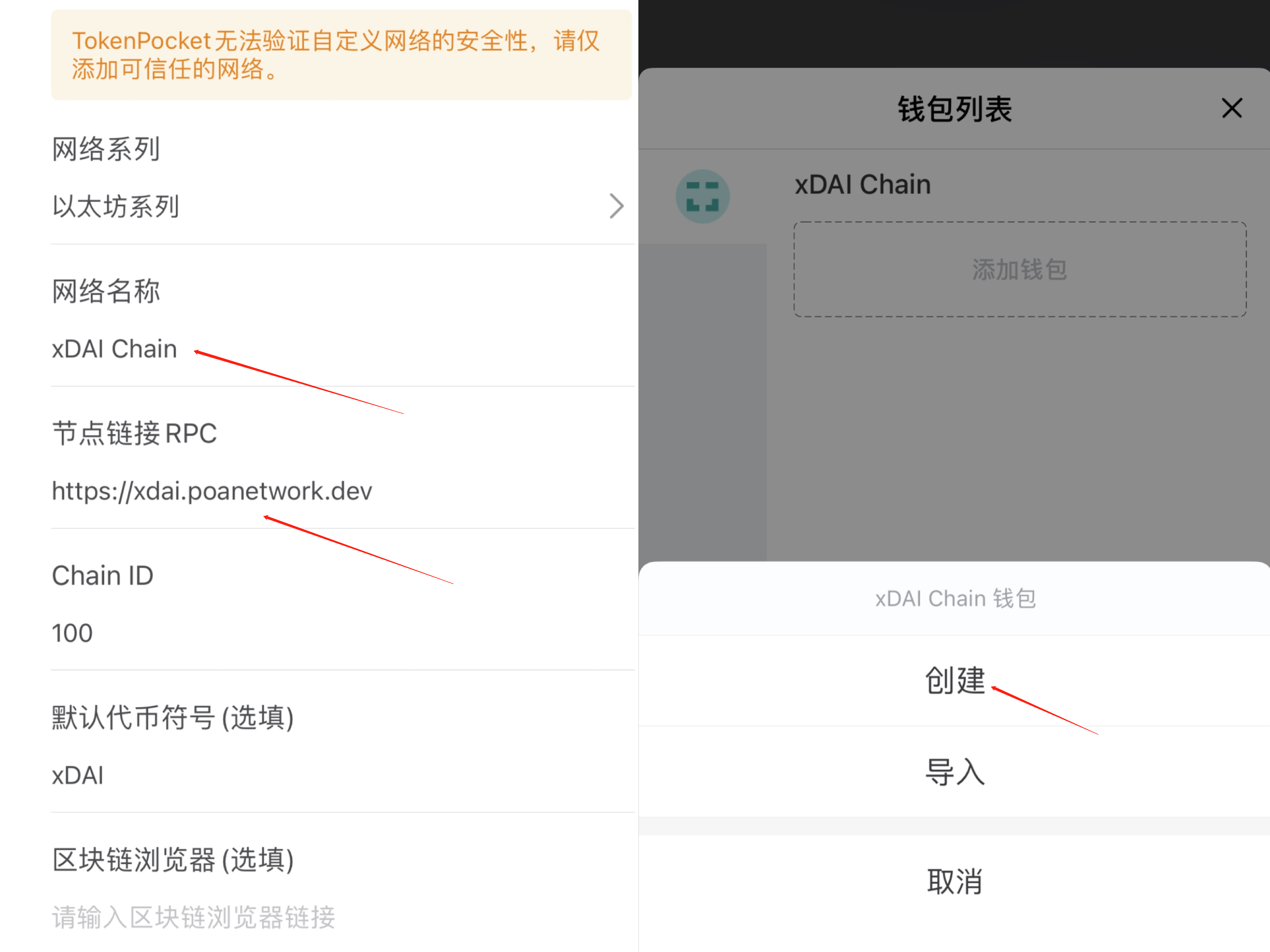 接着,按照图片上所填的信息,原封不动地填入,最后再创建或者导入xDai钱包(提示在上传NFT时需要xDai作为手续费,可提前买入一些,在交易所asdx.io可购入,而我是找教授帮忙购入的。)