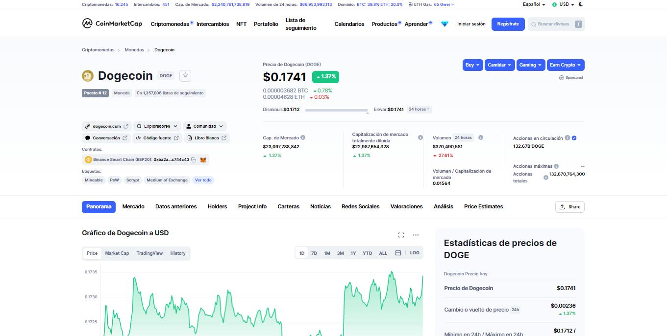 Una criptomoneda ampliamente conocida por ser algo que podemos ver como “la broma original” al menos en el espacio de los activos, Dogecoin es la moneda que hace ver inversiones en otras monedas como algo tonto cuando se dispara, una moneda que surgió como una broma a las demás criptos hace ya al menos unos 9 años. Una moneda que no costaba ni un céntimo (con un mínimo de todos los tiempos determinado en 0.00008547$) a una moneda que a día de hoy logra costar casi 18 centavos de dólar (con un máximo de todos los tiempos de 0.7376$) con una ganancia de al menos 30000% a día de hoy.
