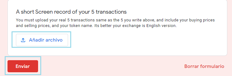Es realmente muy sencillo de llenar, en el incluirás hasta 5 transacciones, solo debes seguir el formato explicado y subir un video corto con tus 5 transacciones elegidas. Claramente transacciones a las que hayas hecho un post en el transcurso de la semana.
