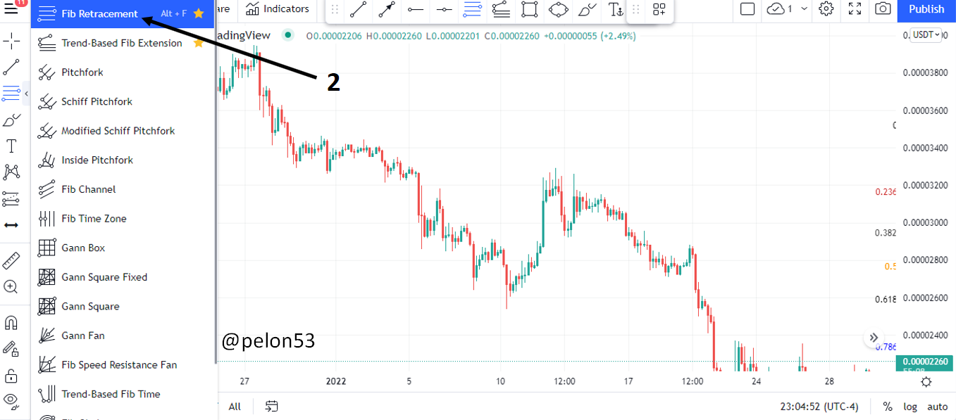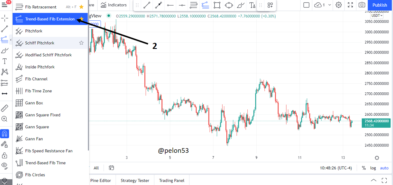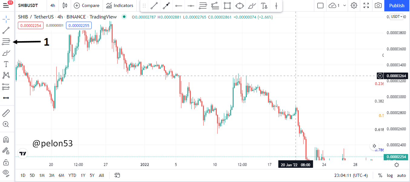 Usaré el Tradingview para esta explicación. Dele clic al 1, como se muestra en la siguiente figura.