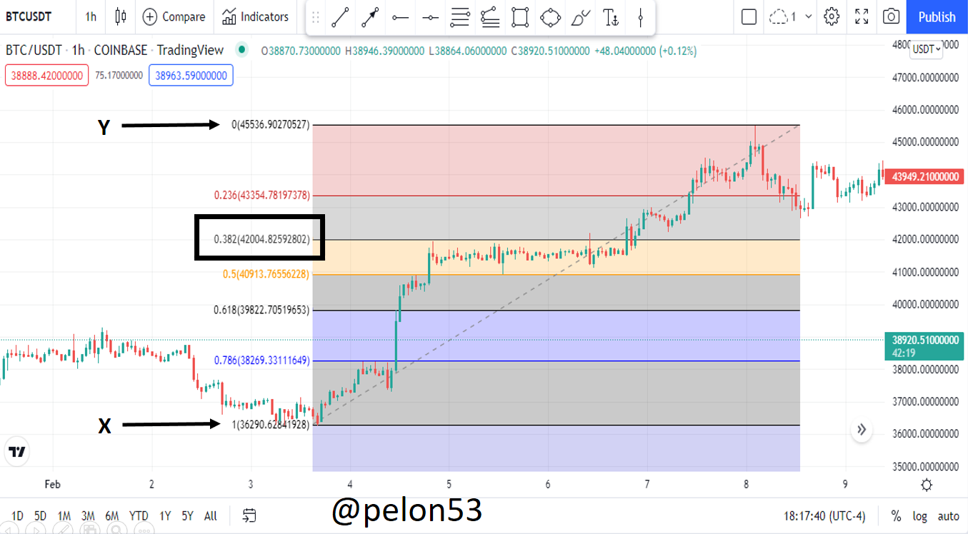 Y = Valor máximo del precio donde finaliza el Retroceso de Fibonacci.
