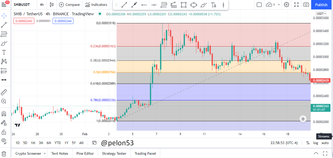 3.- Realice el cálculo del retroceso de Fibonacci, para los niveles de: 0,618 y 0,236. Escoja un par criptográfico a su elección. Muestre capture de pantalla y explique el cálculo que realizó.