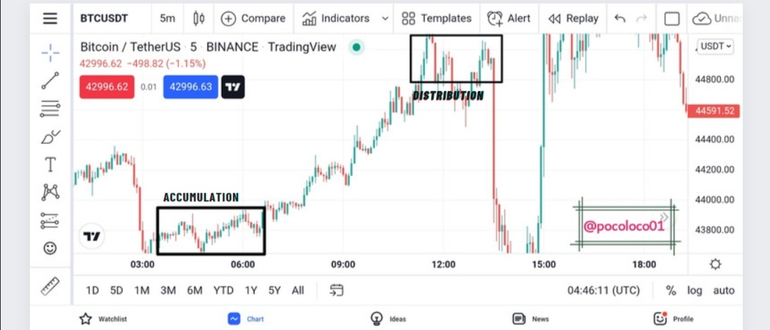 Looking at the above screenshot, we will see two important areas marked out with accumulation and distribution.