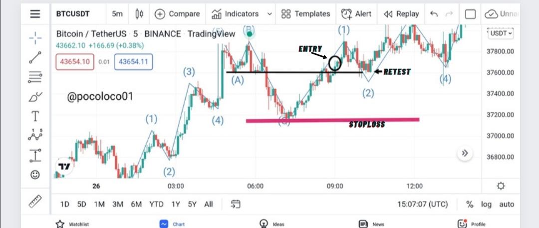 Once the price breaks and closes above the resistance, we enter the market. Secondly, if the entry was missed, we can wait for the price to pull back once it reaches the other resistance at wave 5 and retests the just broken resistance which now serves as support before we make a buy entry.
