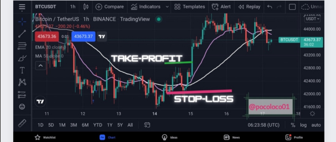 I will be using an SMA of (50 periods) and an EMA of (20 periods) in performing this task on a BTC|USDT pair - 1hr