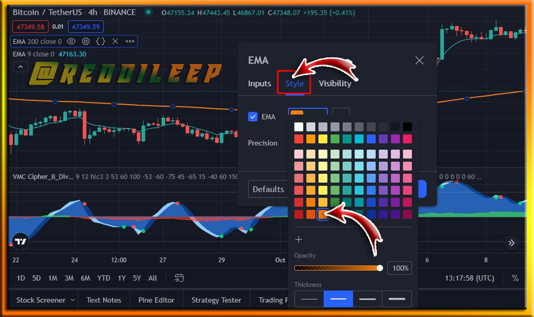 Specially, we have to change the colour of at least one EMA. Because we should identify these two EMAs separately. I can do it by clicking on the "Style" icon. So, here I will change my 200 EMA colour to Yellow colour. You can customize this according to your willingness.