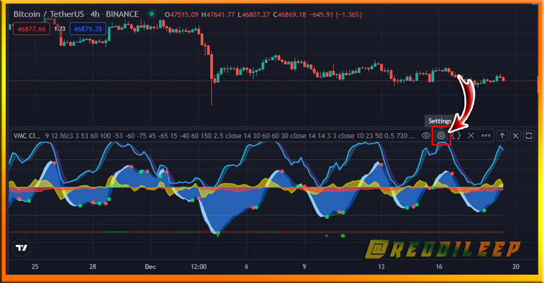 We can use this VuManChu Cipher B indicator for analyzing any Crypto Charts following our desired trading strategy. Actually, this indicator is a bit advanced and complex indicator as it contains a lot of other indicators. However, we can easily use it according to our requirements. In the next subtopics, we will see how to customize this indicator according to our trading strategy.