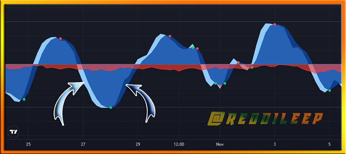 When the above-mentioned Wave Trends cross each other, we can see small dots from Red colour and Blue Colour.