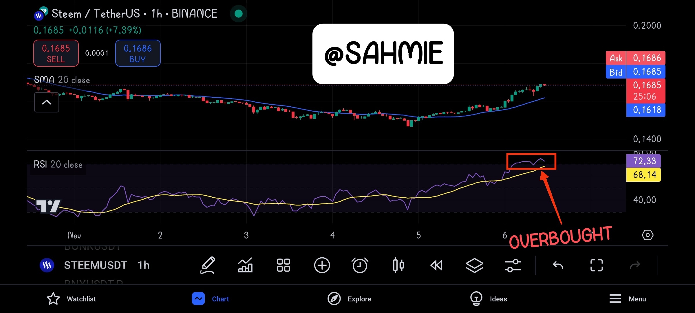 Now looking at the same chart under the 1-hour timeframe, we can see that STEEM is already at the overbought range and is expected to make a reversal.