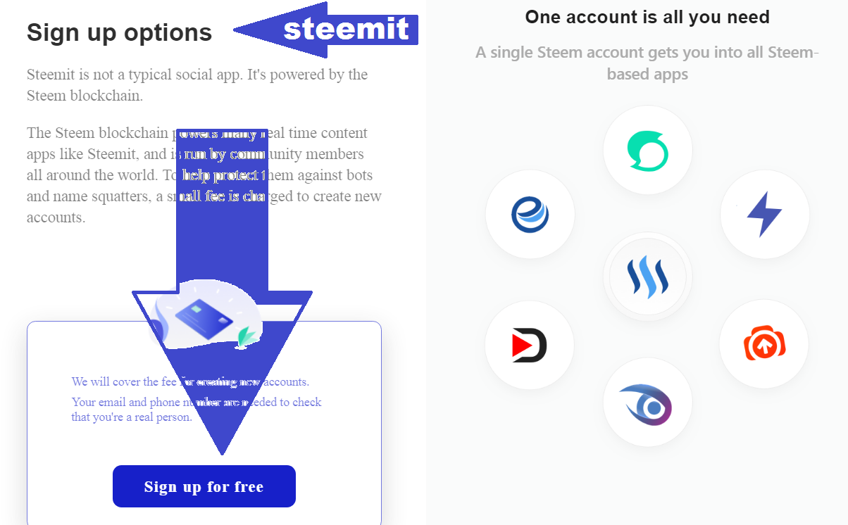 Steemit social media is a decentralized social media. And on steemit social media you can register for free. If you are new and don't know how to sign up on steemit social media. So you have to click on the blue option of Sign up for free for free registration. And as soon as you click on this button, a new registration page will open in front of you.