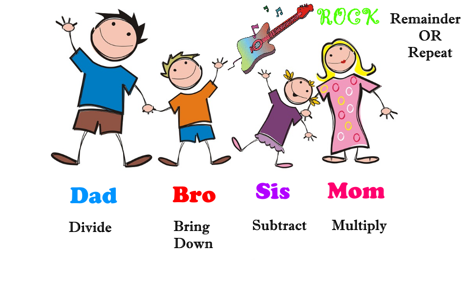 There is a very standard algorithm to do long division. This algorithm can be memorized using the following words from a family: