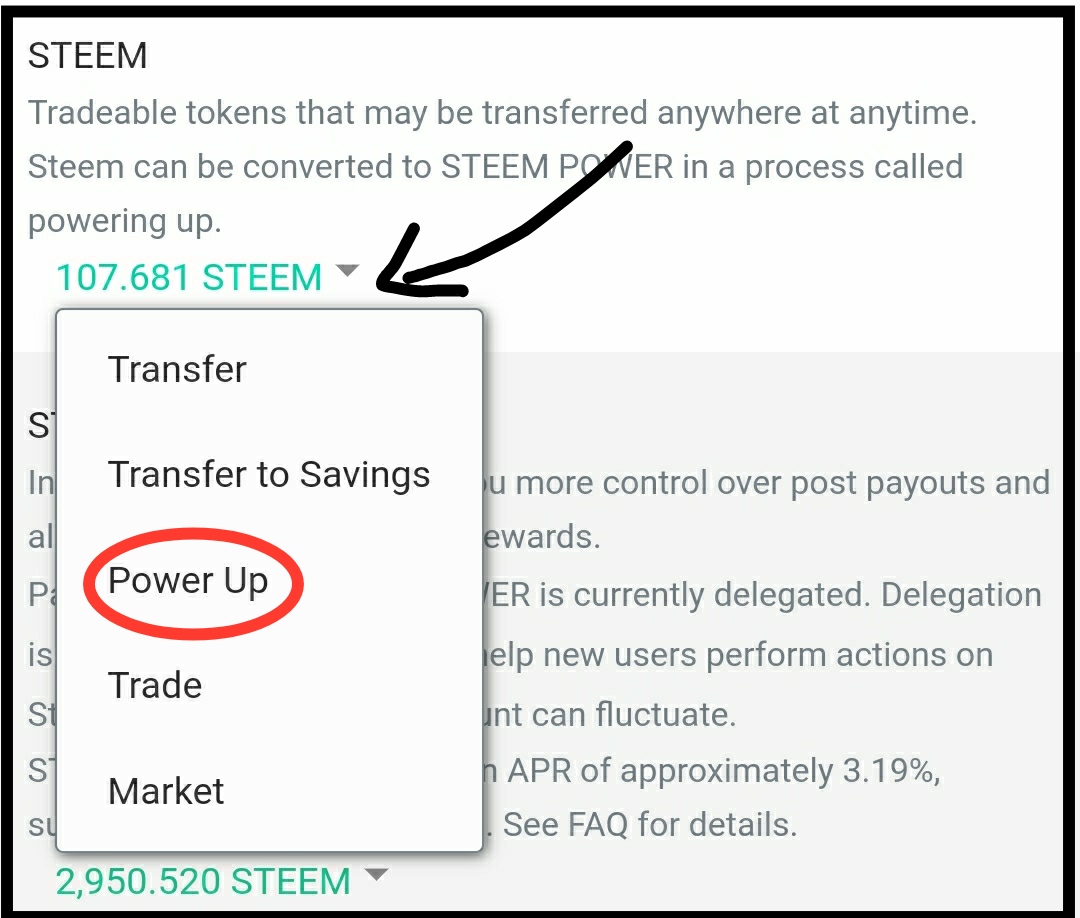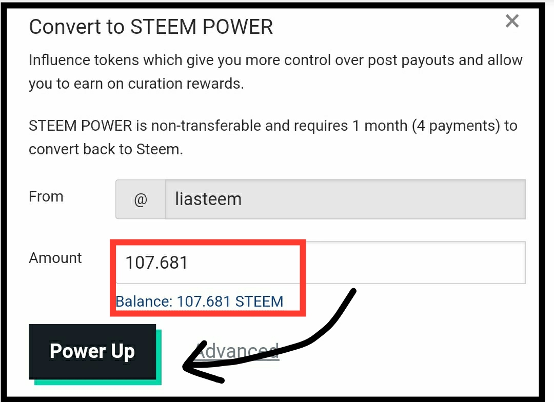 And after finished exchanging SBD to Steem, we need to turn it on, and I turn on 100% Steem that I have and here's the explanation;